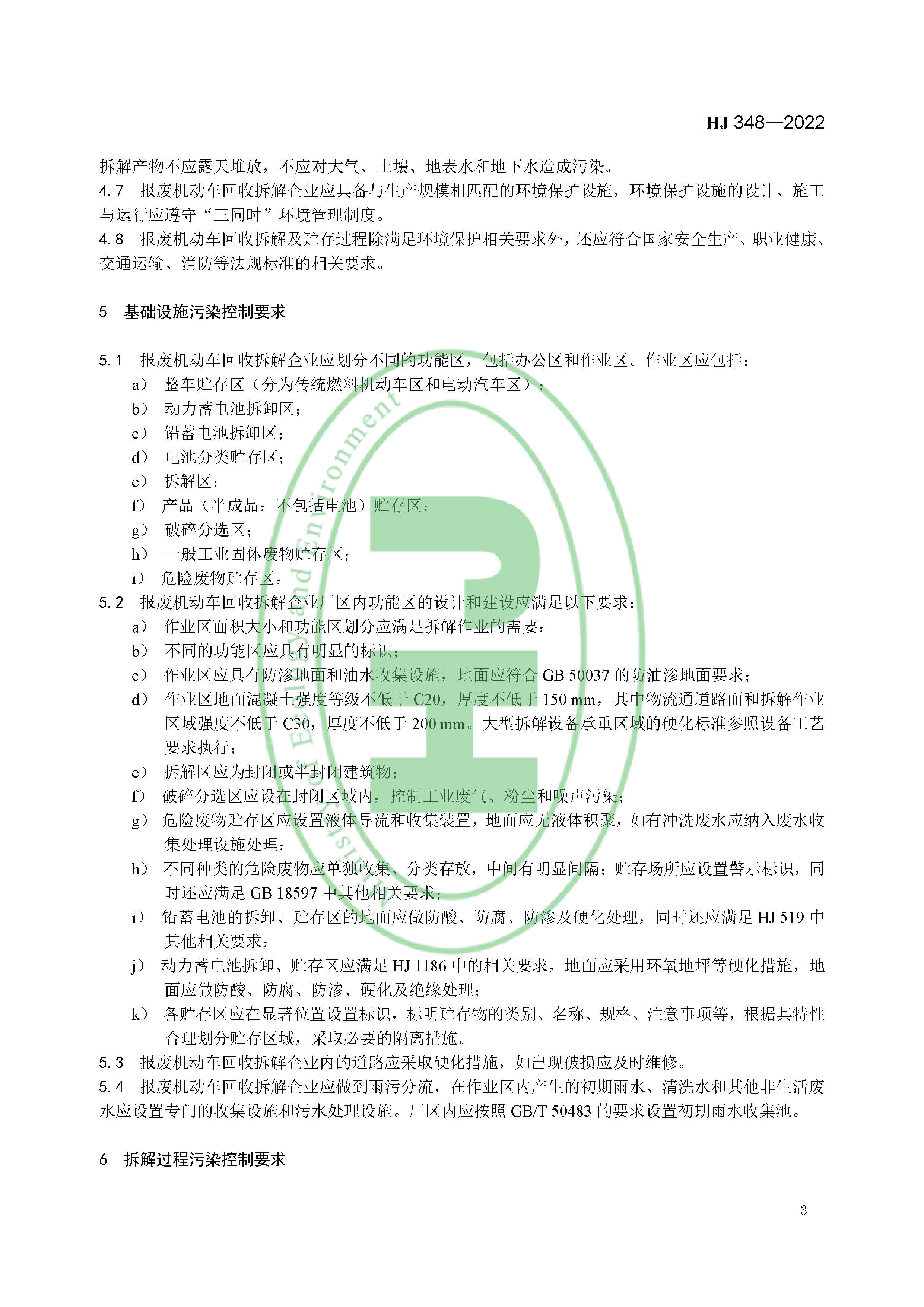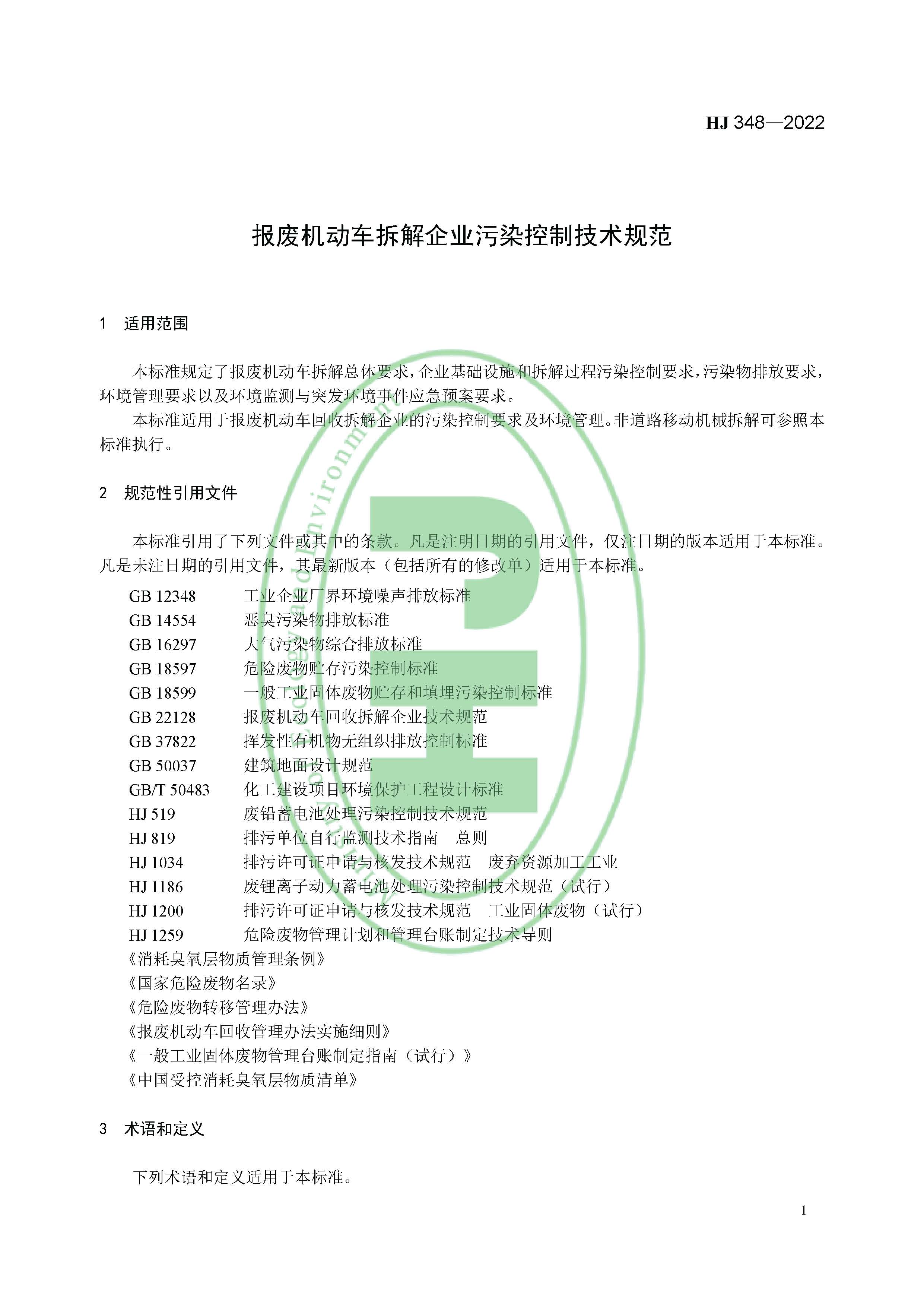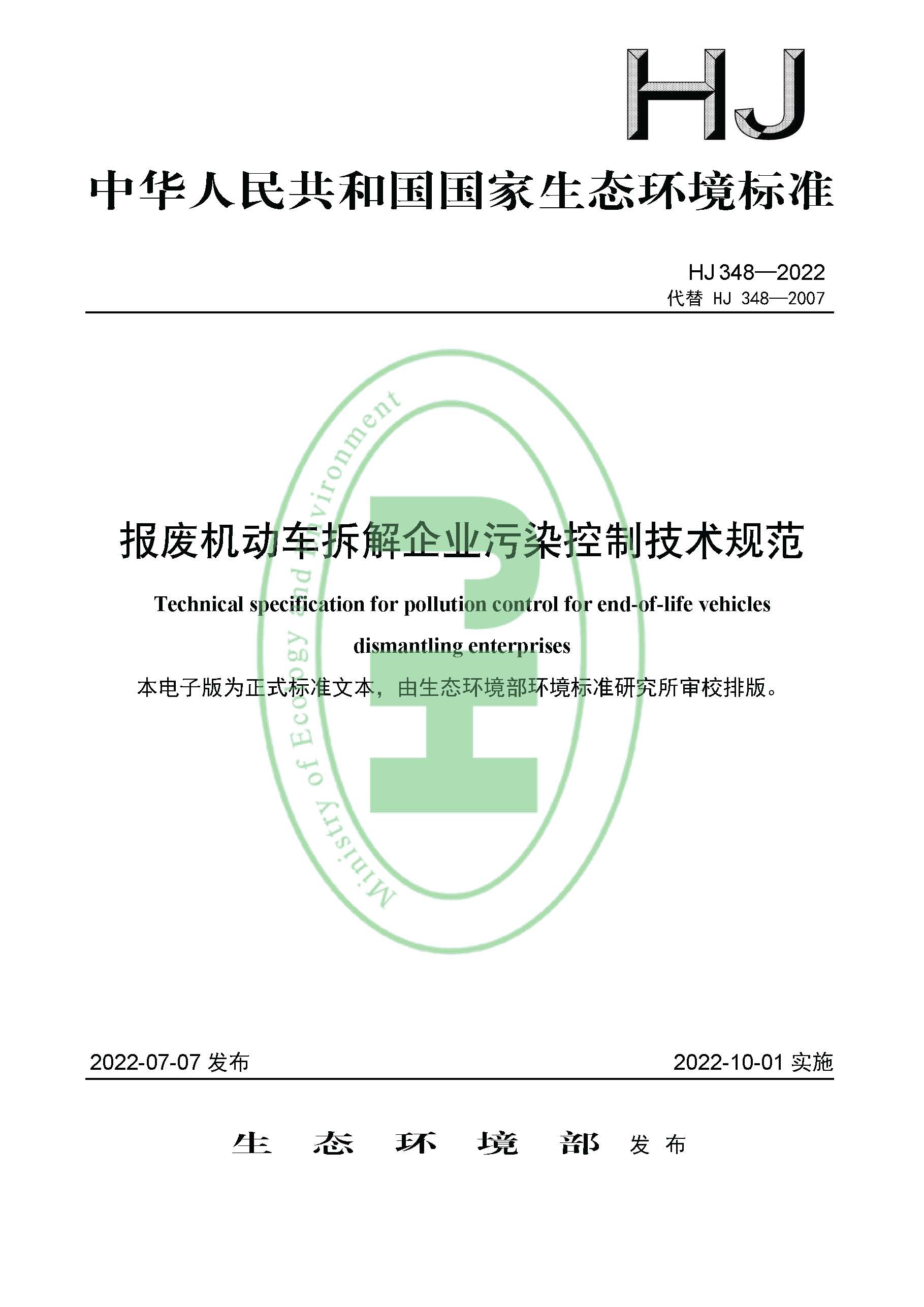 為貫徹《中華人民共和國(guó)環(huán)境保護(hù)法》《中華人民共和國(guó)固體廢物污染環(huán)境防治法》《報(bào)廢機(jī)動(dòng)車回收管理辦法》等法律法規(guī),防治報(bào)廢機(jī)動(dòng)車拆解過(guò)程的環(huán)境污染,規(guī)范報(bào)廢機(jī)動(dòng)車拆解環(huán)境管理工作,制定本標(biāo)準(zhǔn)。本標(biāo)準(zhǔn)規(guī)定了報(bào)廢機(jī)動(dòng)車拆解總體要求,企業(yè)基礎(chǔ)設(shè)施和拆解過(guò)程污染控制要求,污染物排放要求,環(huán)境管理要求以及環(huán)境監(jiān)測(cè)與突發(fā)環(huán)境事件應(yīng)急預(yù)案要求。本標(biāo)準(zhǔn)首次發(fā)布于 2007 年,本次是對(duì)《報(bào)廢機(jī)動(dòng)車拆解環(huán)境保護(hù)技術(shù)規(guī)范》(HJ 348—2007)的第一次修訂。