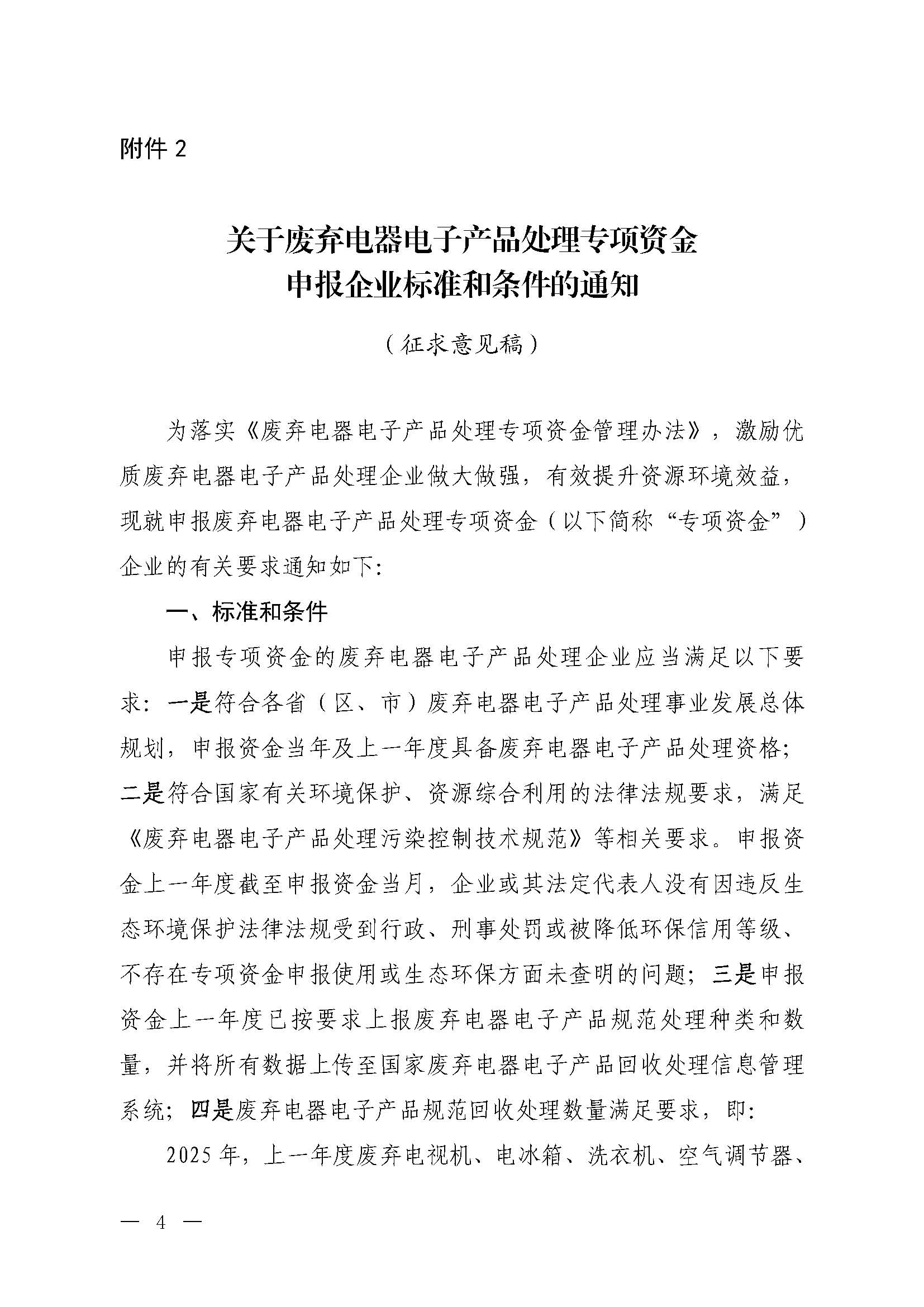 為貫徹落實(shí)《廢棄電器電子產(chǎn)品處理專項(xiàng)資金管理辦法》,促進(jìn)廢棄電器電子產(chǎn)品的妥善回收處理,我部會同財(cái)政部研究編制了《關(guān)于廢棄電器電子產(chǎn)品處理專項(xiàng)資金申報(bào)企業(yè)標(biāo)準(zhǔn)和條件的通知(征求意見稿)》,現(xiàn)公開征求意見。征求意見稿及其編制說明可登錄我部網(wǎng)站(https://www.mee.gov.cn/),在“意見征集”欄目或首頁搜索欄輸入本通知名稱檢索查閱。