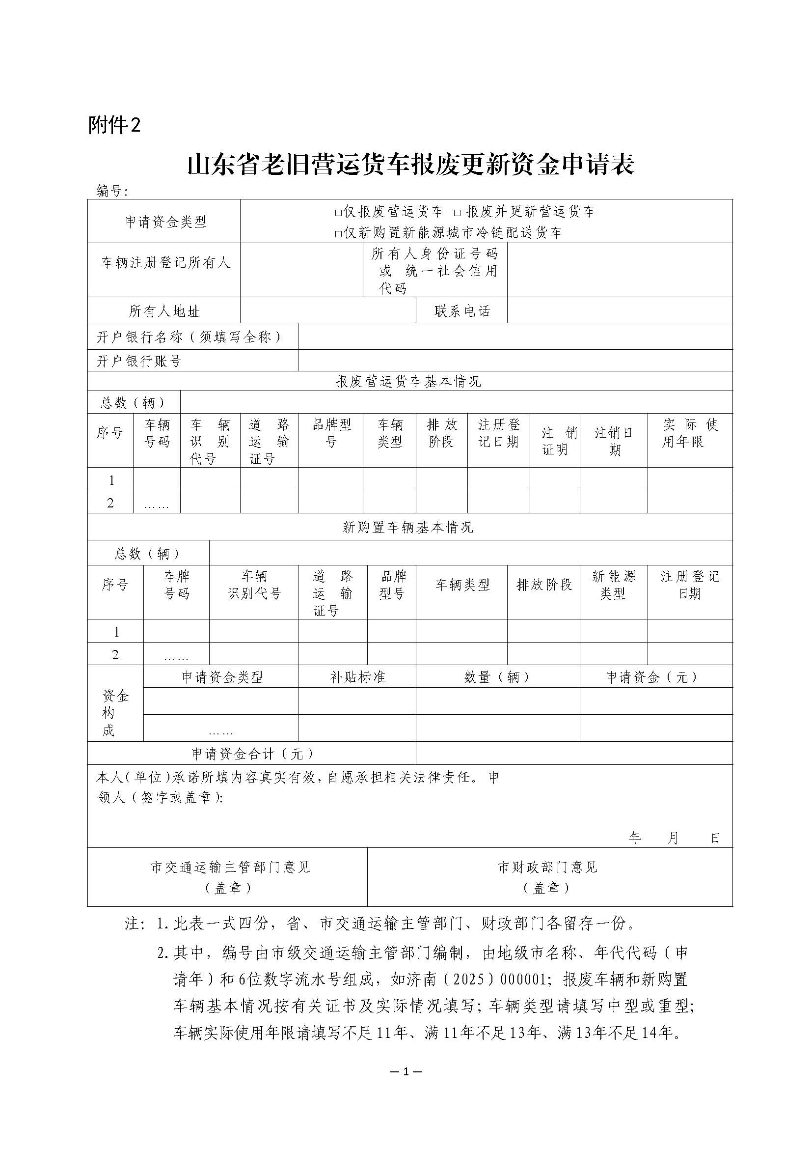 附件2:山東省老舊營(yíng)運(yùn)貨車報(bào)廢更新資金申請(qǐng)表.docx