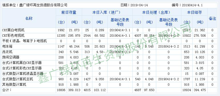 2019.04.14 回收拆解統(tǒng)計(jì)表