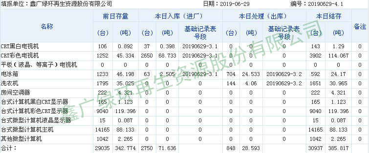 2019.06.29回收拆解統(tǒng)計(jì)表