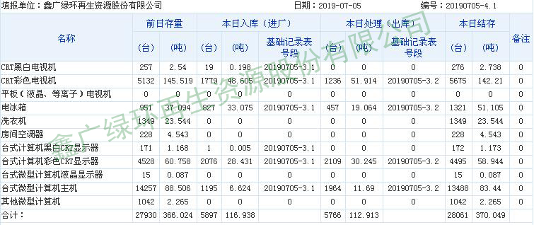2019.07.04回收拆解統(tǒng)計表