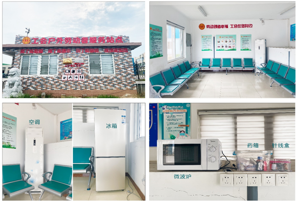 在煙臺黃渤海新區(qū)總工會幫助下,鑫廣綠環(huán)將A區(qū)二號門崗客戶休息區(qū)打造成戶外勞動者服務站,向戶外勞動者免費提供熱水、解暑飲品,急救愛心藥品等,服務站內可以免費享受手機充電、微波爐餐食加熱等便民服務,為公司客戶、環(huán)衛(wèi)工人、外賣小哥等戶外勞動者帶來回家的感覺。