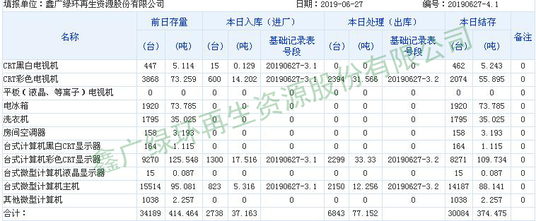 2019.06.30回收拆解統(tǒng)計(jì)表